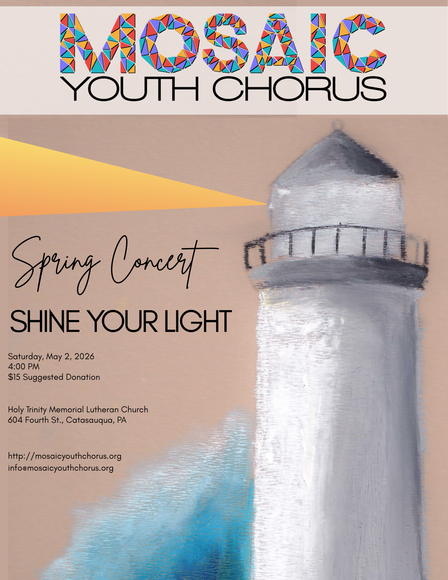 “This is my daughter’s first year with the Mosaic Youth Chorus, and already I can tell that her experience here will be one of the most meaningful of her teenage years. In Mosaic, we’ve found a community of diverse, talented, and inclusive kids and families. They don’t just sing as a group of teens from across the Lehigh Valley—they sing as one. I’m deeply grateful for the opportunity my child has to be part of such a special group.”